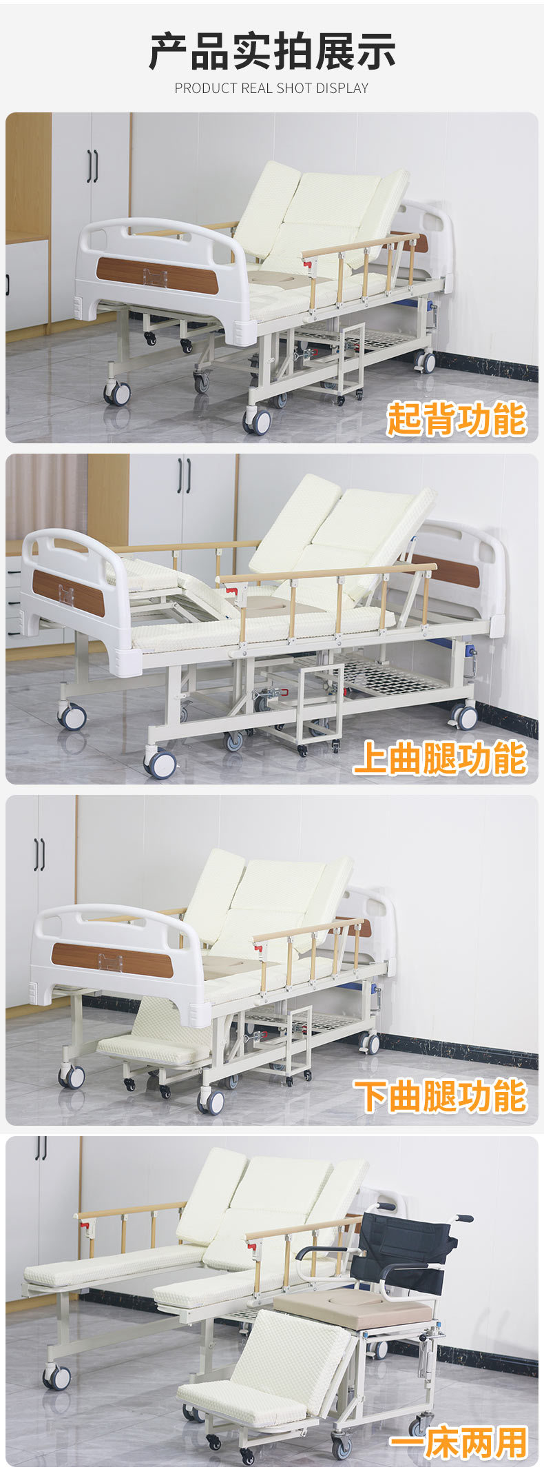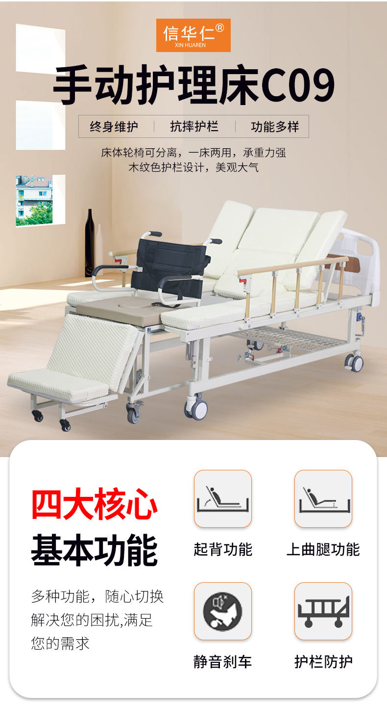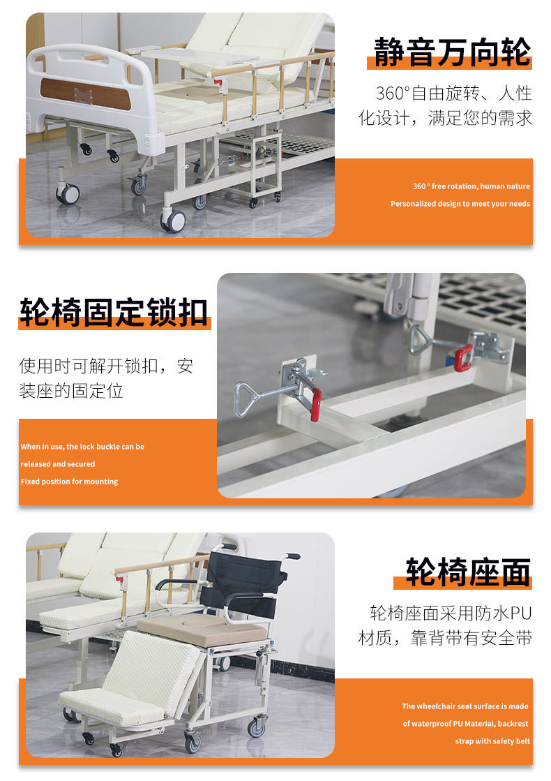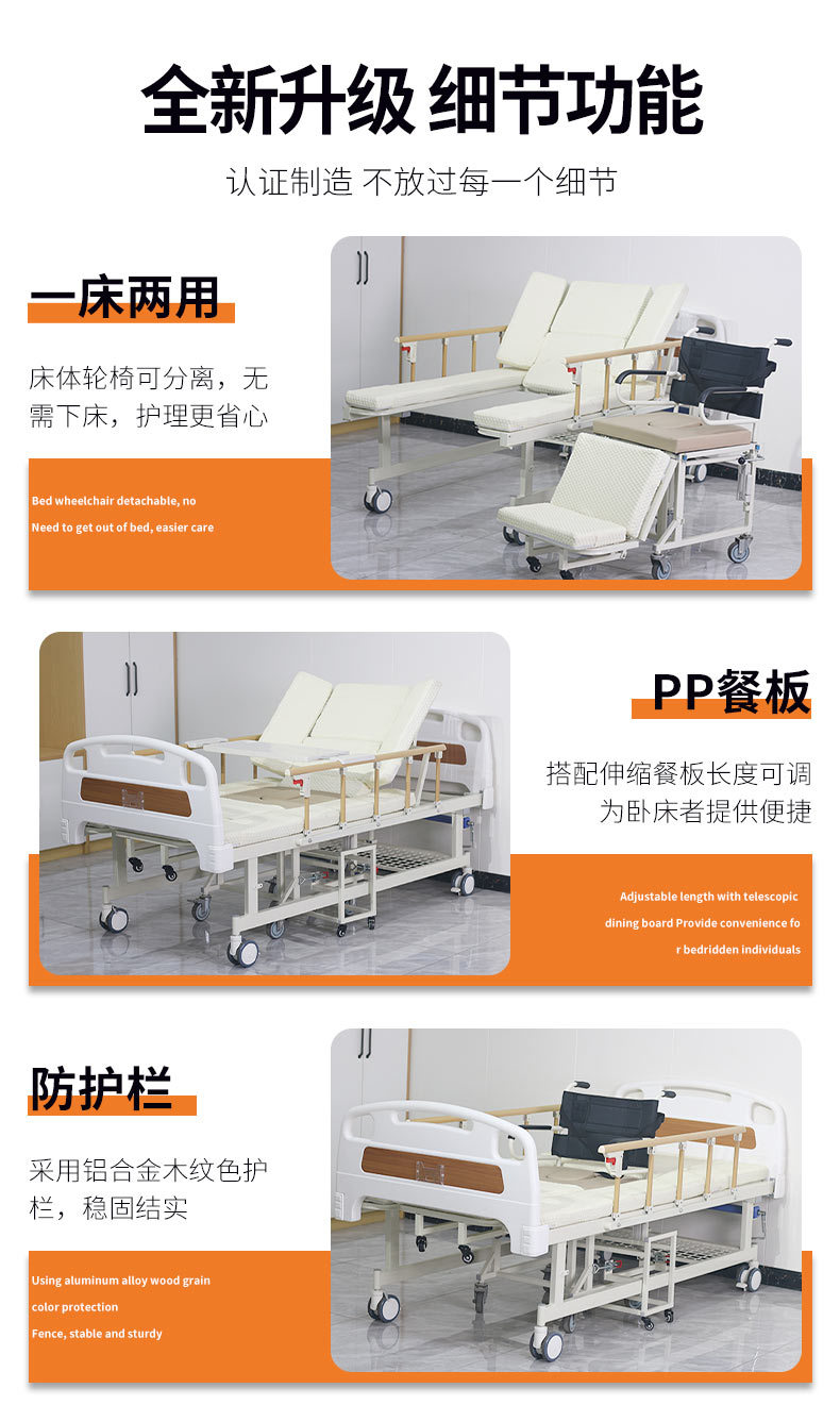 標(biāo)準(zhǔn)配置:ABS床頭1副;鋁合金折疊護(hù)欄1副;雙面靜音輪4個(gè);